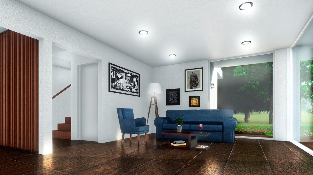 El proyecto cuenta en su primer nivel con un dormitorio, cocina, logia, sala de calderas, baños, una sala de estar y un estar- comedor con salida a un patio interno y a uno externo más amplio.
