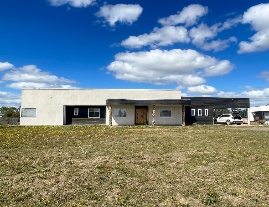 Casa VNB – año 2019 – Esta vivienda de un nivel ubicada en Osorno, cuenta con una arquitectura de estilo moderna con dos volúmenes que le dan forma al horizonte , de 215 m²; consta de una sala de estar que da a una terraza techada, con vista a todo el entorno natural, ademas posee tres dormitorios (uno en suite), dos baños, cocina, logia, una oficina y estacionamiento techado.
