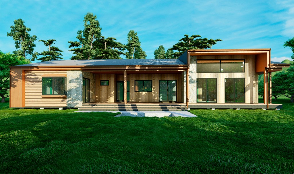 Casa A|C – año 2022 – Se emplazara en Trapi, Rio Bueno; su diseño cuenta con una arquitectura modera, con cubiertas a dos aguas, de 191 m².