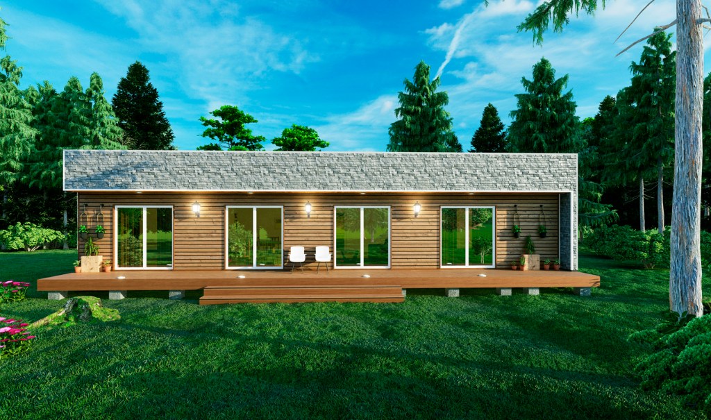 Casa Paraíso del Maiten J|A – Frutillar – año 2021 – Vivienda de un nivel, de estilo rectangular con aguas escondidas , de 114 m², la cual consta de cuatro dormitorios (uno en suite), estar, comedor y cocina en un espacio central amplio, baño y una terraza.