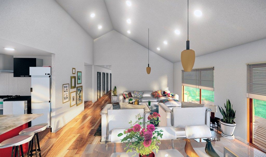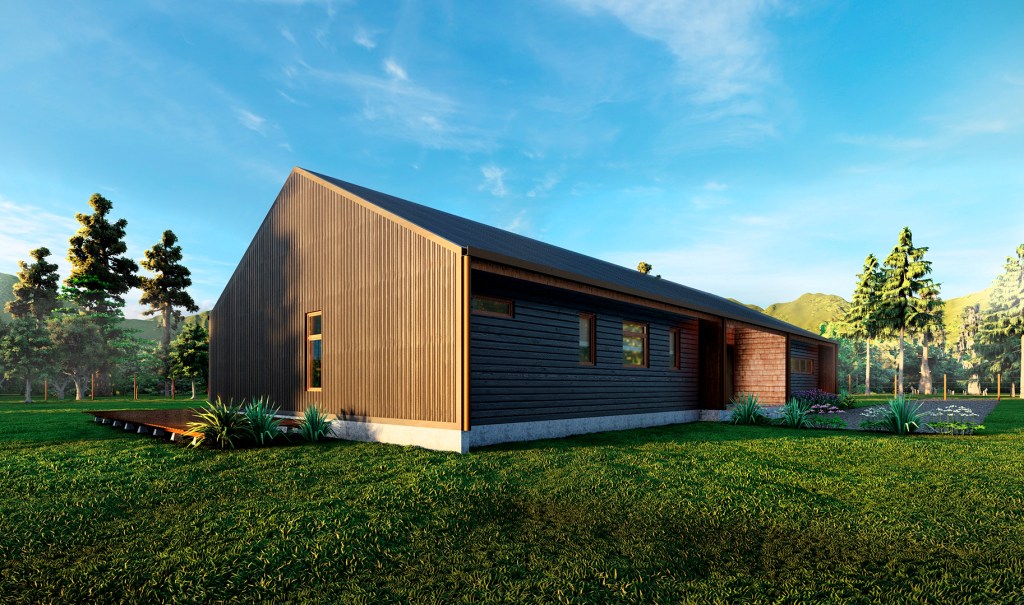 Casa M|P – año 2023 – Se emplazara en zona rural de Frutillar; vivienda de un nivel, con un diseño moderno a dos aguas, de 171 m².