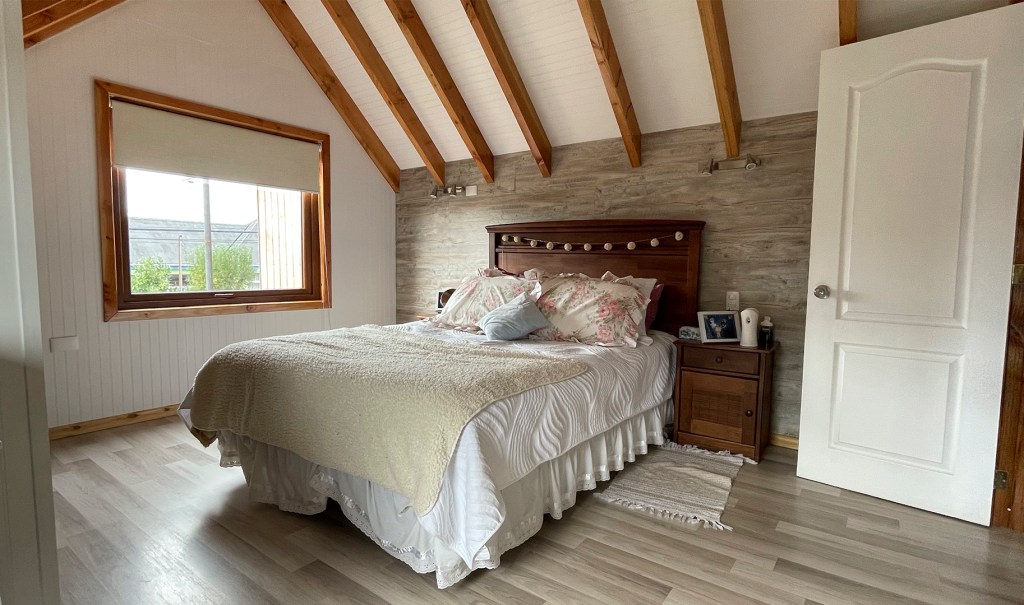 Casa Las Heras A|S – Purranque – Vivienda de dos niveles, con volumetría a dos aguas, de estilo moderno, de 99 m², la cual consta de tres dormitorios, una sala de estar, cocina, comedor y dos baños.