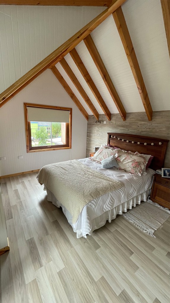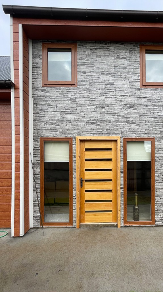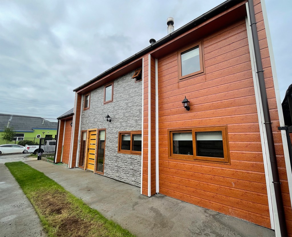 Revestida en madera y zinc.