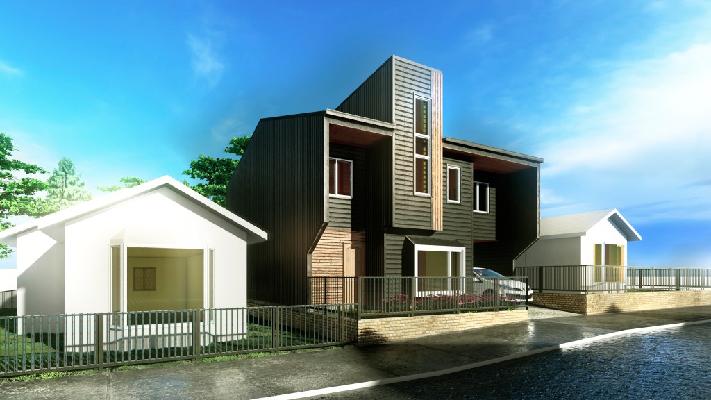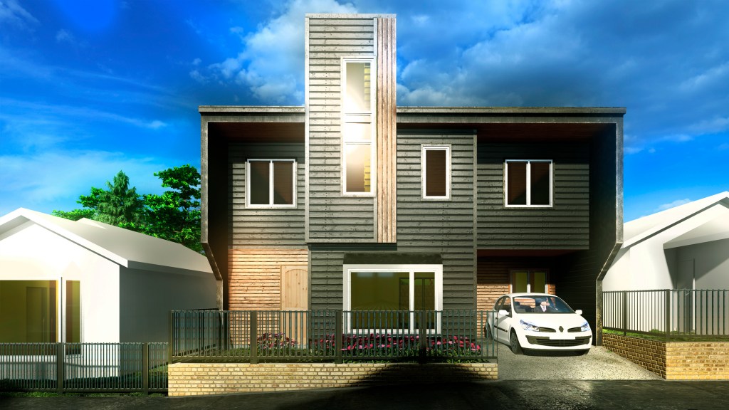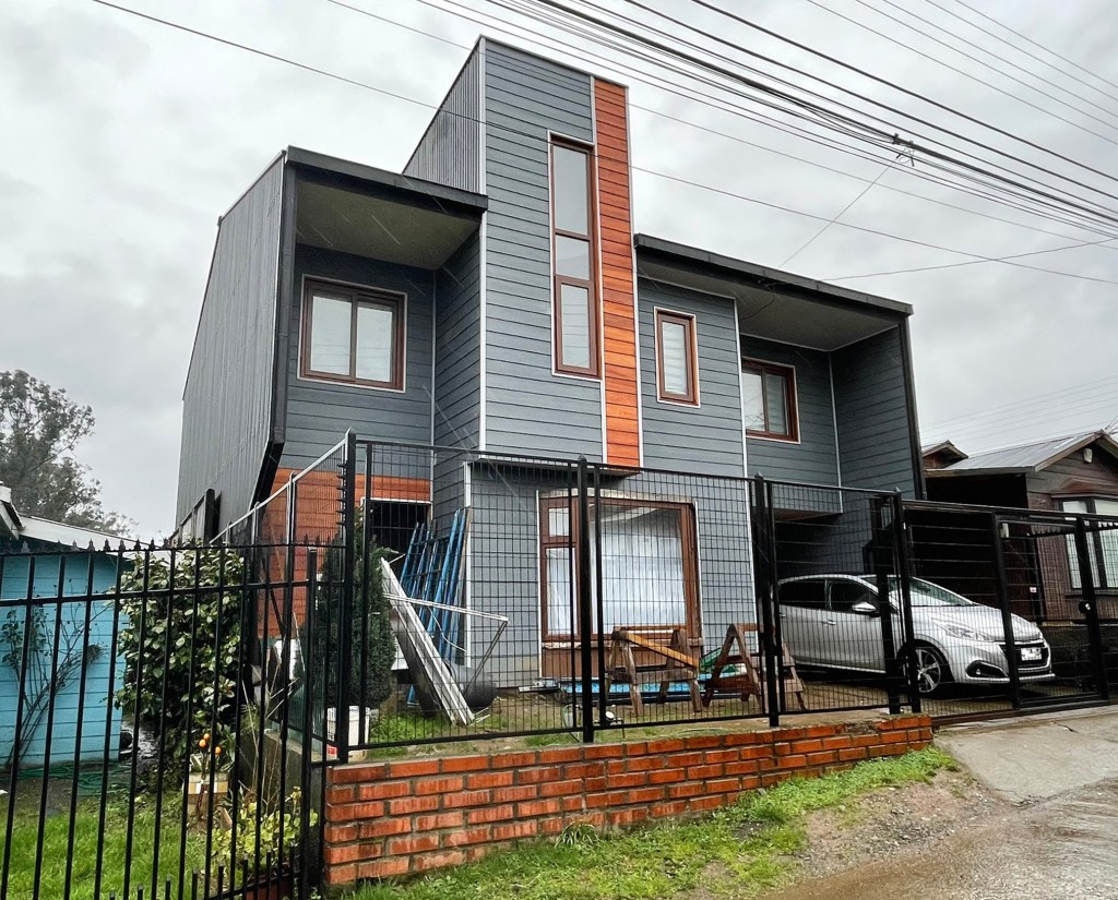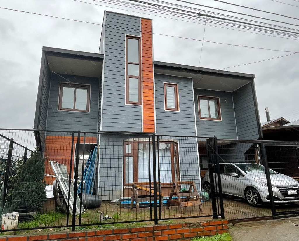 Ampliación Casa Agu/Mirasur – Osorno – año 2021 – El proyecto contempla una ampliación de un segundo nivel, acogido a un agrupamiento de fachada continua, de 107 m²; consta de cuatro dormitorios, dos baños y una sala de estudio, la cual es un volumen saliente que ilumina todo el espacio común del segundo piso (Espacio importante para trabajar desde casa en tiempos de pandemia).