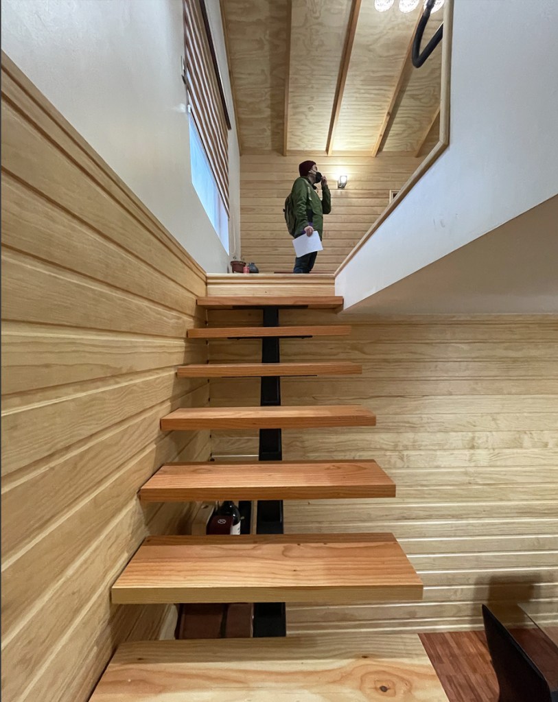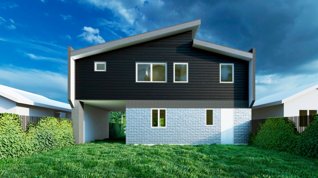 Ampliación Casa Liz/Mirasur – Osorno – año 2022 – El proyecto contempla una ampliación de un segundo nivel, acogido a un agrupamiento de fachada continua, de 98 m²; consta de tres dormitorios, un baño y una sala de estudio, la cual es iluminada por una lucarna saliente.