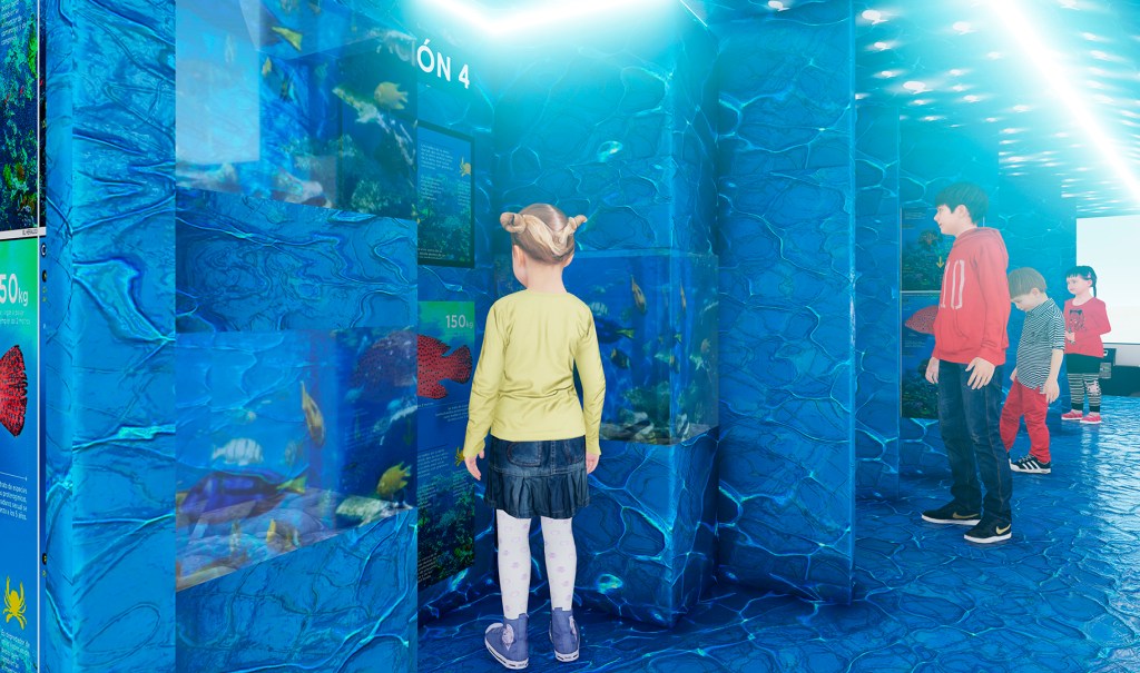 Acuario Itinerante D.M.M. – Osorno – año 2020 – Acuario educacional a realizarse en un bus existente con la finalidad de recorrer distintos lugares y ser presentado principalmente a niños. Este proyecto cuenta con 5 estaciones distintas, envueltas en un entramado con variados quiebres los cuales van generando un circuito.